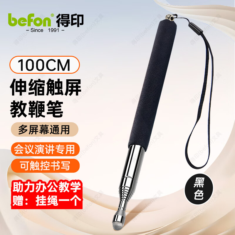 得印伸缩教鞭 指挥棒教鞭棍教师专用黑板教鞭1米长指挥杆100cm 教学一体机1476电子触屏白板笔黑色1/个