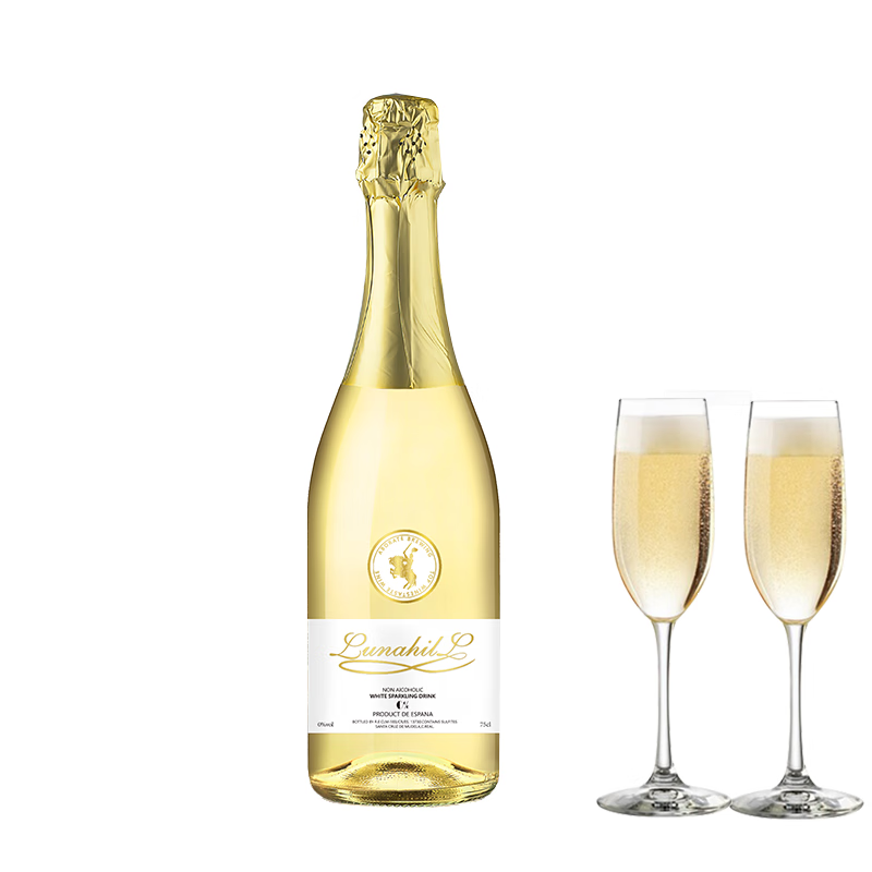 LUNAHILL配2香槟酒杯中秋礼盒西班牙原瓶进口无醇起泡酒莫斯卡托无酒精0度 750ML单支装+两个香槟杯