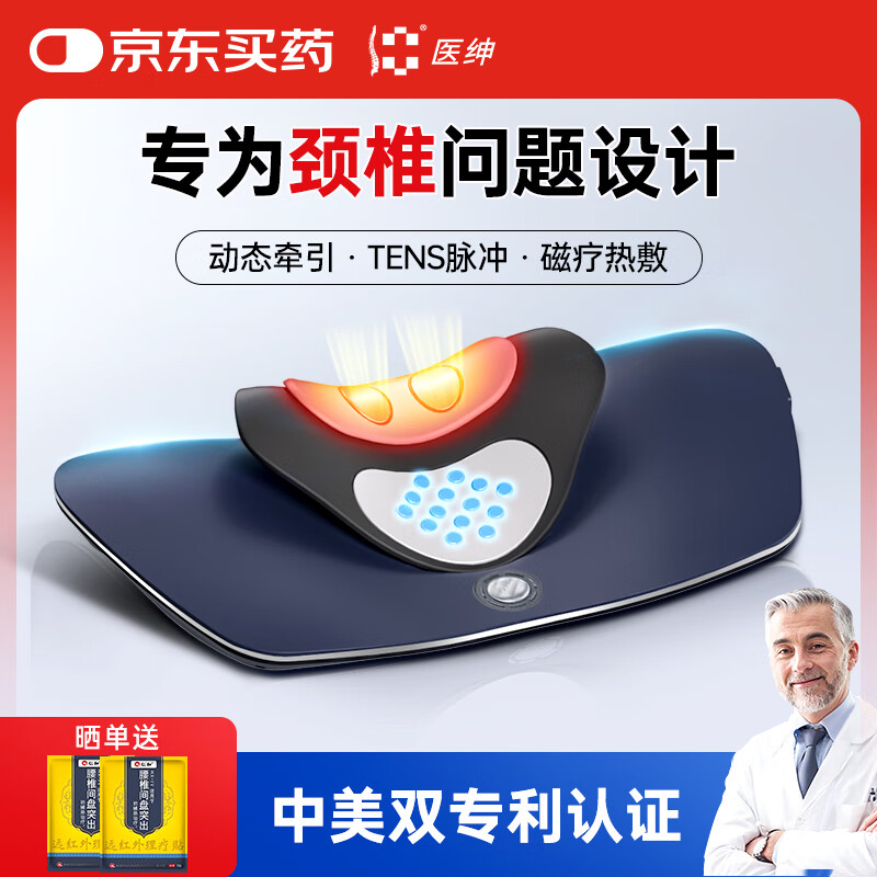 医绅颈椎牵引器按摩仪颈部理疗仪家用曲度拉伸热敷矫正肩颈治护颈枕疗