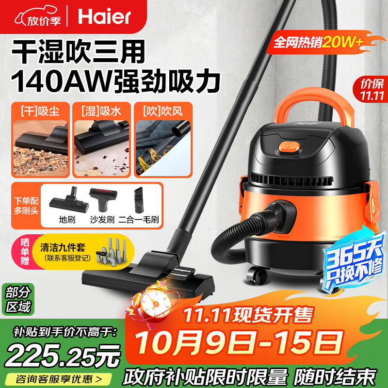 海尔(Haier)桶式吸尘器家用美缝干湿吹多用大容量大吸力大功率小型工业开荒吸尘器HZ-T615