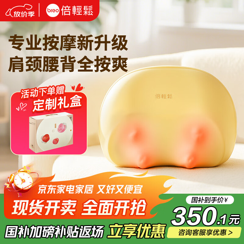 倍轻松(breo)肩颈腰背按摩仪器按摩枕腰部按摩器全身多部位热敷揉捏靠垫送老年人长辈父母亲女友生日礼物