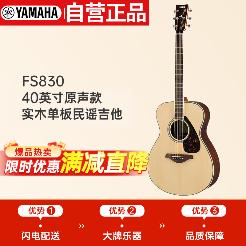 雅马哈(YAMAHA)FS830 原声款 实木单板 初学者民谣吉他40英寸吉它亮光原木色