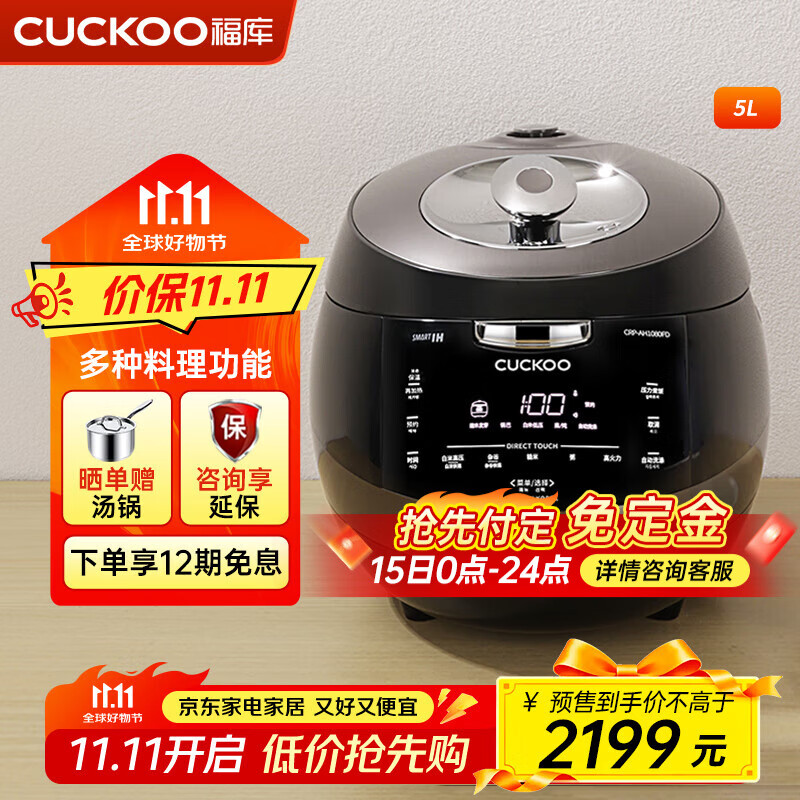福库(CUCKOO)黑晶钻电饭煲家用2-8个人韩国原装进口大容量高压电饭锅智能语音定时多功能IH高压钻石聚能内胆 AH1080FD 5L