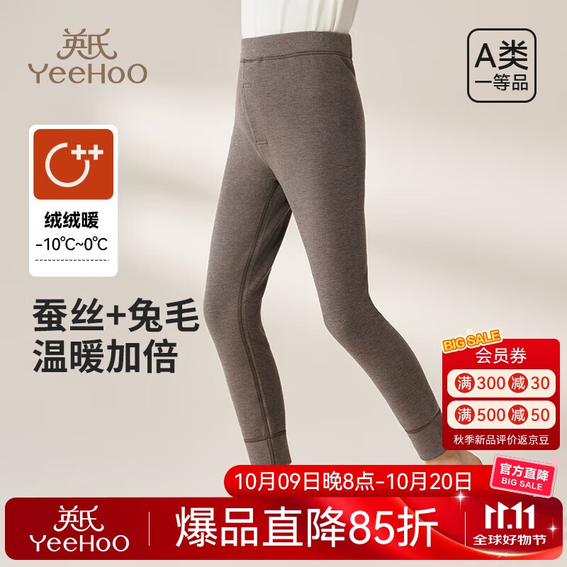 英氏【桑蚕丝兔绒】儿童保暖裤加绒加厚打底裤男女童保暖秋裤灰色140