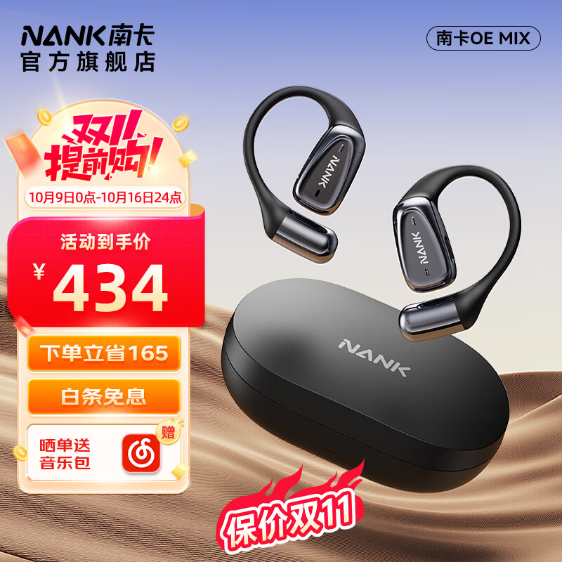 南卡(NANK)00压开放式OE MIX蓝牙耳机不入耳气传导 挂耳式运动跑步骑行长续航通话降噪 黑色
