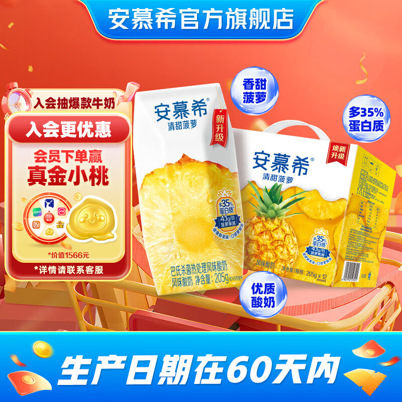 安慕希伊利常温清甜菠萝酸奶整箱生牛乳牛奶乳品儿童营养早餐礼盒装 菠萝酸奶205gx12盒x1箱