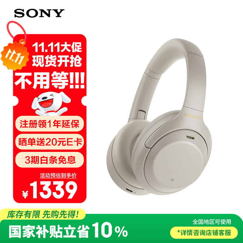 索尼(SONY) WH-1000XM4 头戴式无线耳机 蓝牙降噪耳机 网课游戏适用耳麦礼物送男女友学生 铂金银