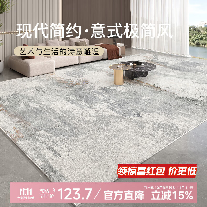七棉水晶绒客厅地毯 耐脏防滑易打理 轻奢蓝金 现代简约 160*230cm