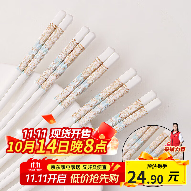 康琴(KANGQIN)【抖音同款】陶瓷筷子景德镇家用高档防霉耐高温不变形雏菊10双装