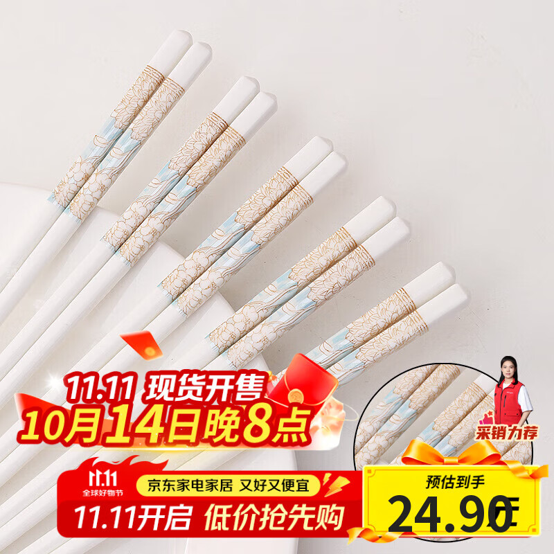 康琴(KANGQIN)【抖音同款】陶瓷筷子景德镇家用高档防霉耐高温不变形雏菊10双装