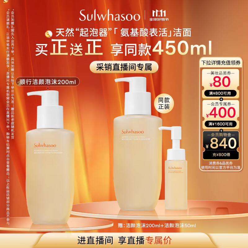雪花秀顺行柔和洁颜泡沫200ml氨基酸洗面奶补水温和清洁礼物