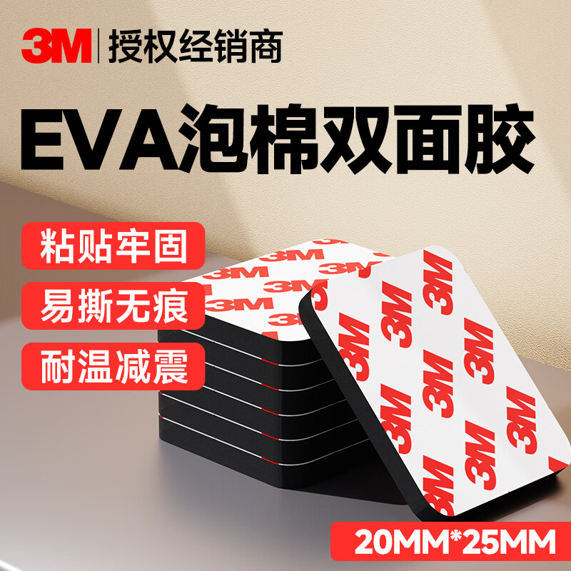 EVA泡棉双面胶带 泡沫双面胶墙面免钉加厚固定胶免打孔 20*25mm(20片)-黑色