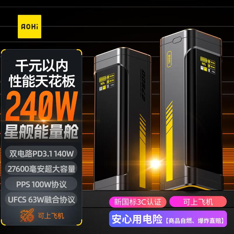 Aohi奥海【3C认证】240W星舰能量舱140W双向PD3.1充电宝 27600mAh大容量移动电源大功率 可上飞机
