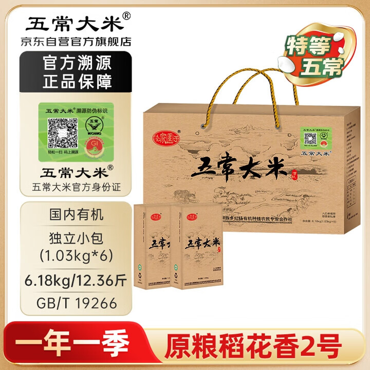 五常大米 官方溯源 陆家围子 有机认证 企业福利礼品礼盒6.18kg(1.03kg*6)