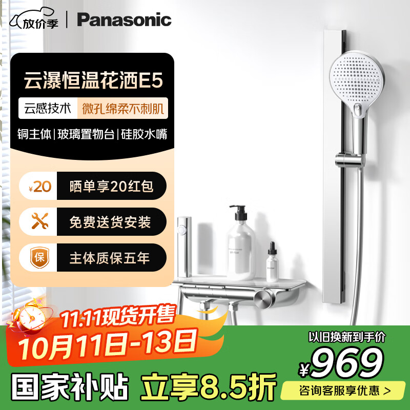 松下(Panasonic)全铜恒温小淋浴套装E5 简易无顶喷花洒智能家用浴室