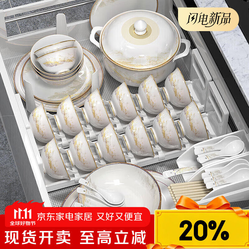 洛威大好河山62件景德镇陶瓷餐具套装碗碟套装家用乔迁新居碗盘套装