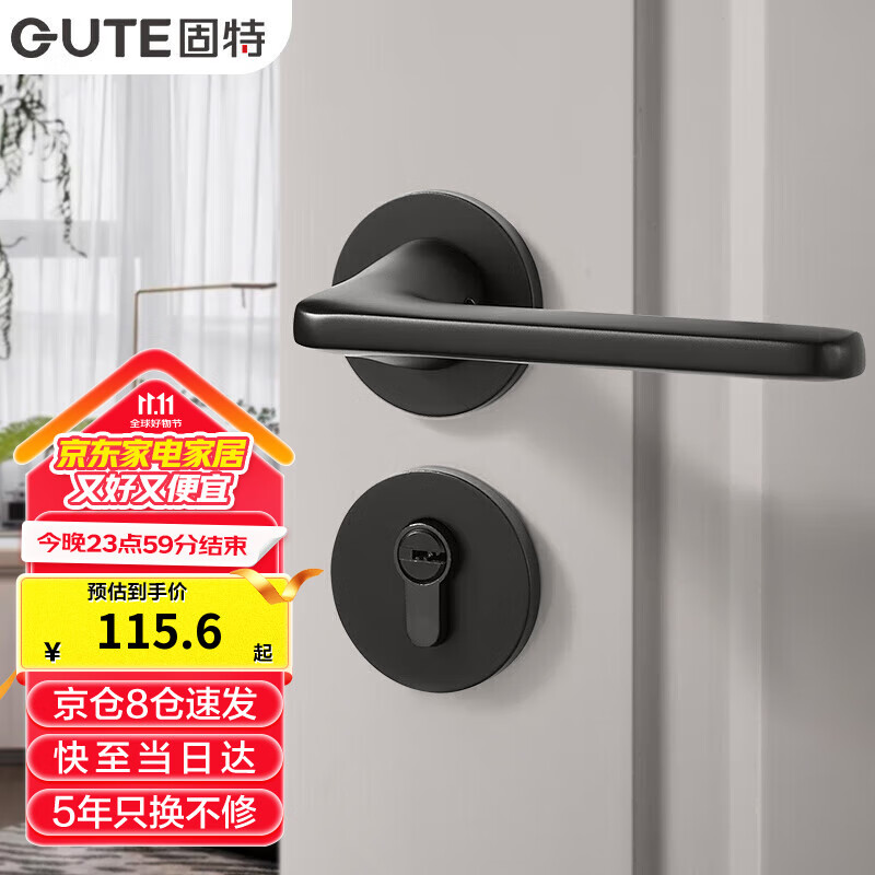 固特(GUTE)门锁室内房门锁卧室门锁卫生间实木门把手轻音降噪门锁具哑黑色