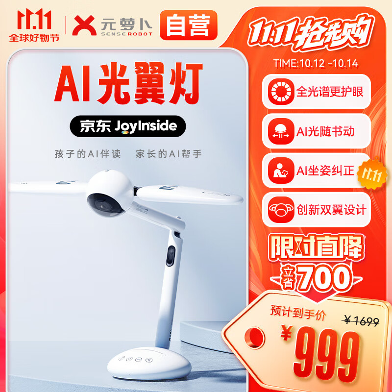 元萝卜SenseRobot京东JoyInside大模型光翼机器人桌面光翼灯AI学习专注力儿童护眼灯智能阅读台灯国AA全光谱家用