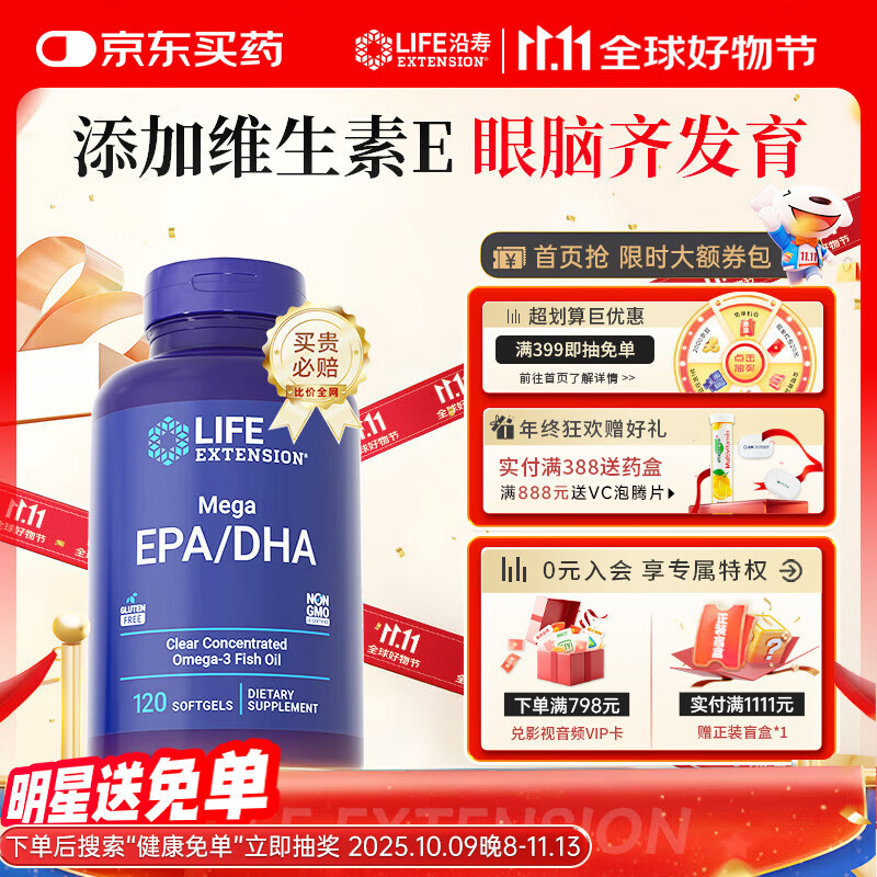 Life Extension沿寿 DHA儿童深海鱼油提高记忆力补脑软胶囊高纯度EPA美国进口