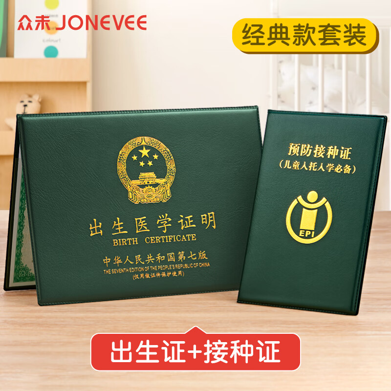 众未(JONEVEE)出生证明预防针疫苗本保护套(2本套装)经典双插墨绿色宝宝出生医学证明外皮皮套 ZWCS03