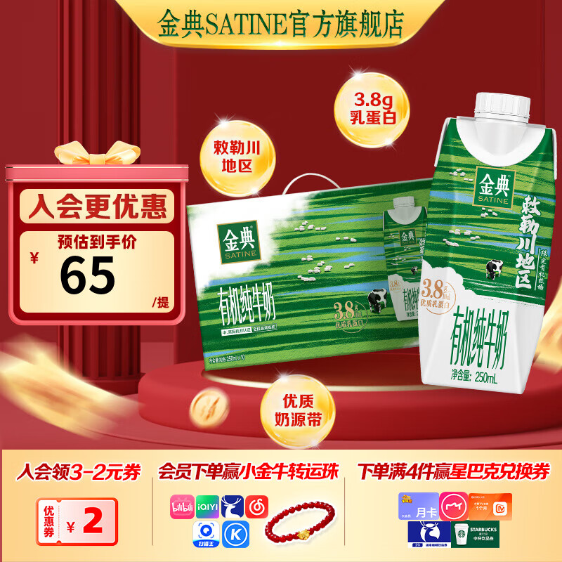 金典有机纯牛奶梦幻盖250ml*10盒(敕勒川限定牧场) 3.8g乳蛋白 8月产 金典有机纯牛奶梦幻盖