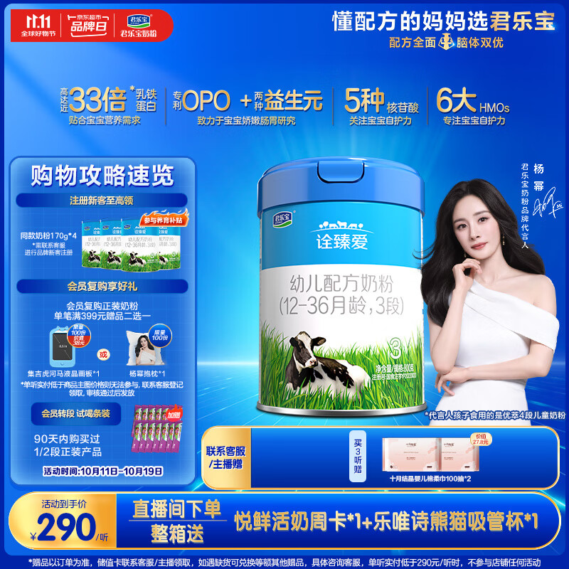 君乐宝诠臻爱3段幼儿配方奶粉(12-36月龄) 800g 高达近33倍乳铁蛋白