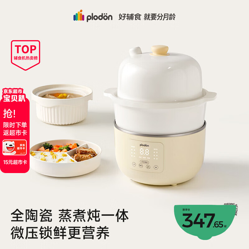 浦利顿(PLODON)小陶气辅食锅 婴儿BB煲蒸煮炖一体锅宝宝炖汤电炖锅 全陶瓷电蒸锅