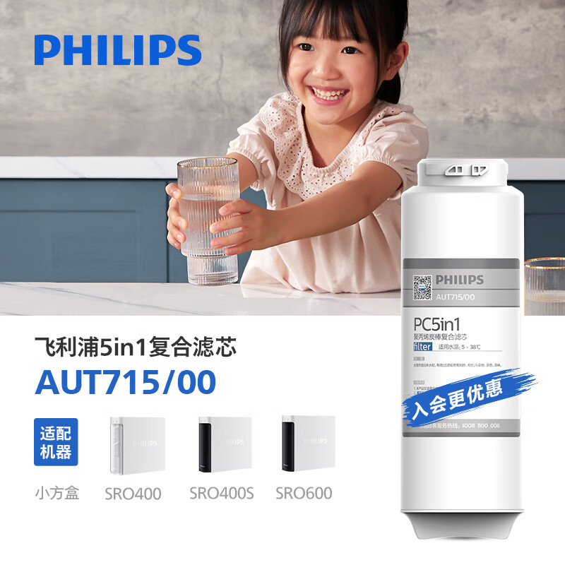 飞利浦(PHILIPS)家用净水器小方盒原装五合一复合滤芯 AUT715/00(适配设备2033/2036/2037/3038)