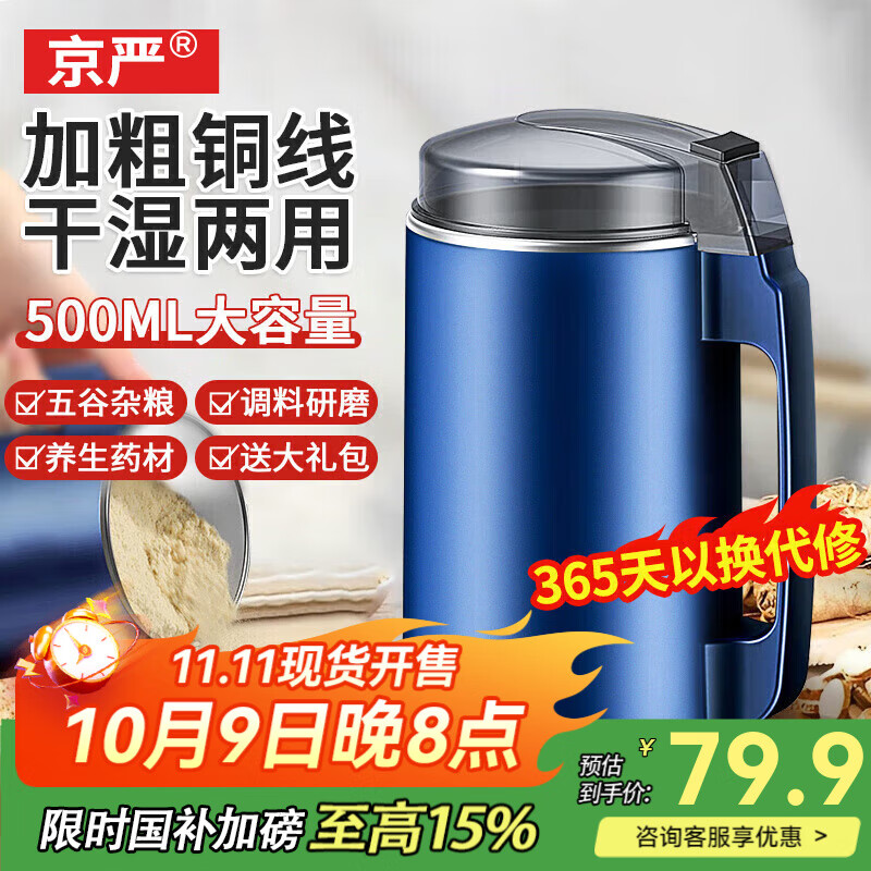 京严磨粉机打粉机超细研磨机中药材粉碎机家用磨粉商用五谷杂粮破碎机 强劲动力【500ML超大容量】享大礼包 万能粉碎机小型干湿两用研磨器电动