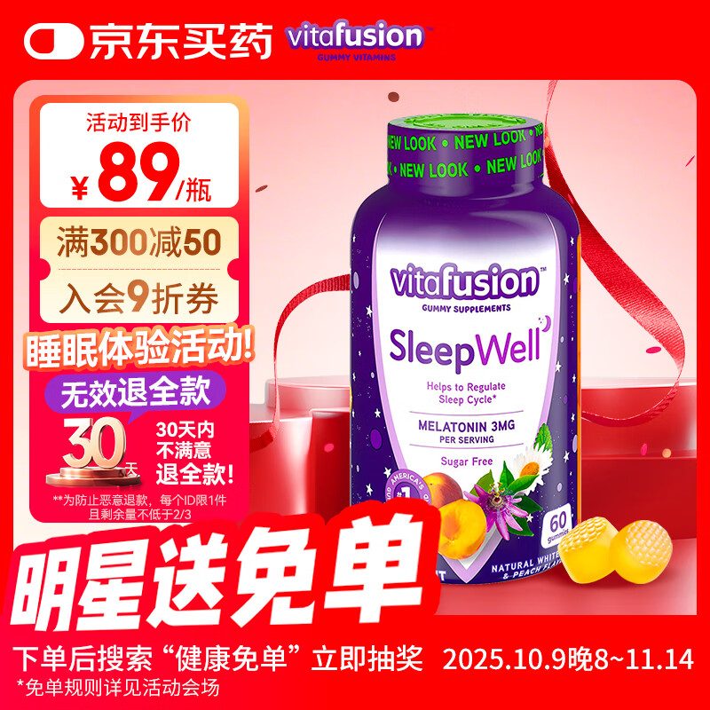 小熊糖(Vitafusion)Vitafusion美国3mg褪黑素改善睡眠助睡眠失眠退黑色素软糖60粒/瓶