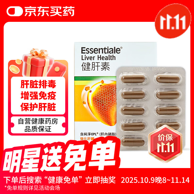 ESSENTIALE 易善复 德国健肝素胶囊补充EPL肝脏排毒保护肝脏熬夜加班应酬护肝片疲劳肝损伤脂肪肝胆碱药60粒