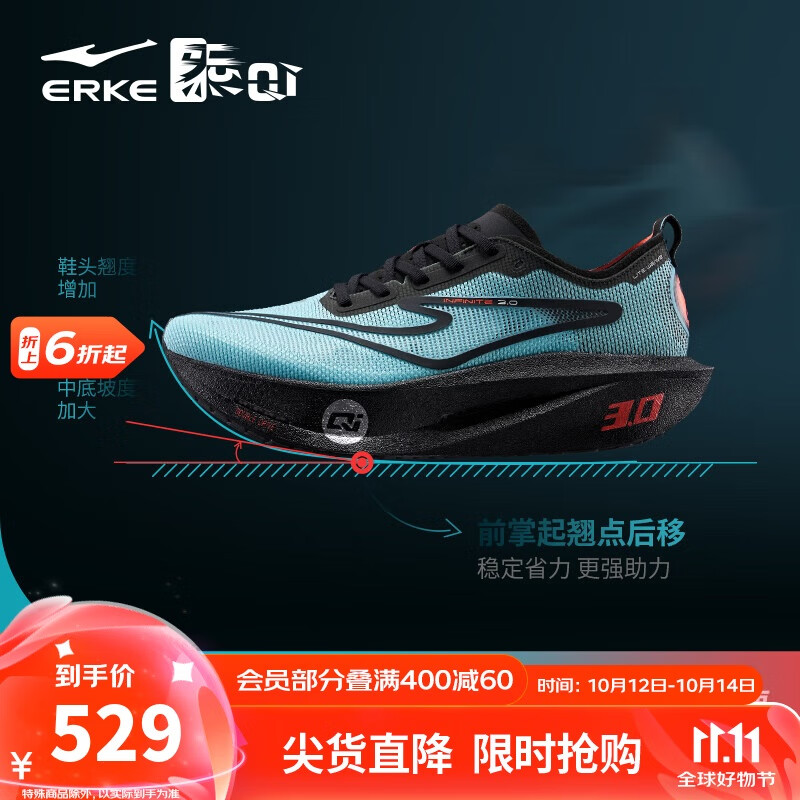 鸿星尔克芷境3代丨运动鞋男体测减震竞速碳板跑鞋马拉松跑步鞋