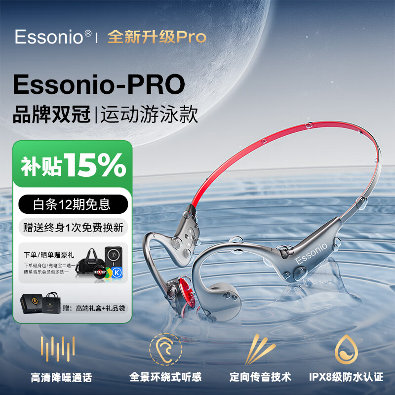 ESSONIO PRO【年度旗舰】骨传导游泳蓝牙耳机不入耳开放式32G内存运动跑步骑行耳机通话降噪苹果华为通用