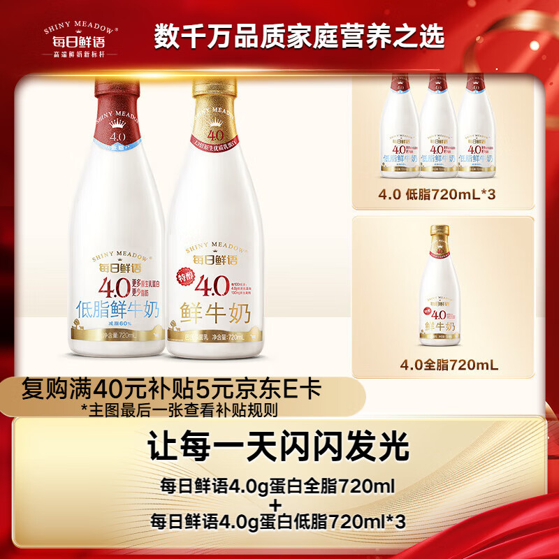 每日鲜语4.0g蛋白720ml*1+4.0g蛋白低脂720ml*3共4瓶