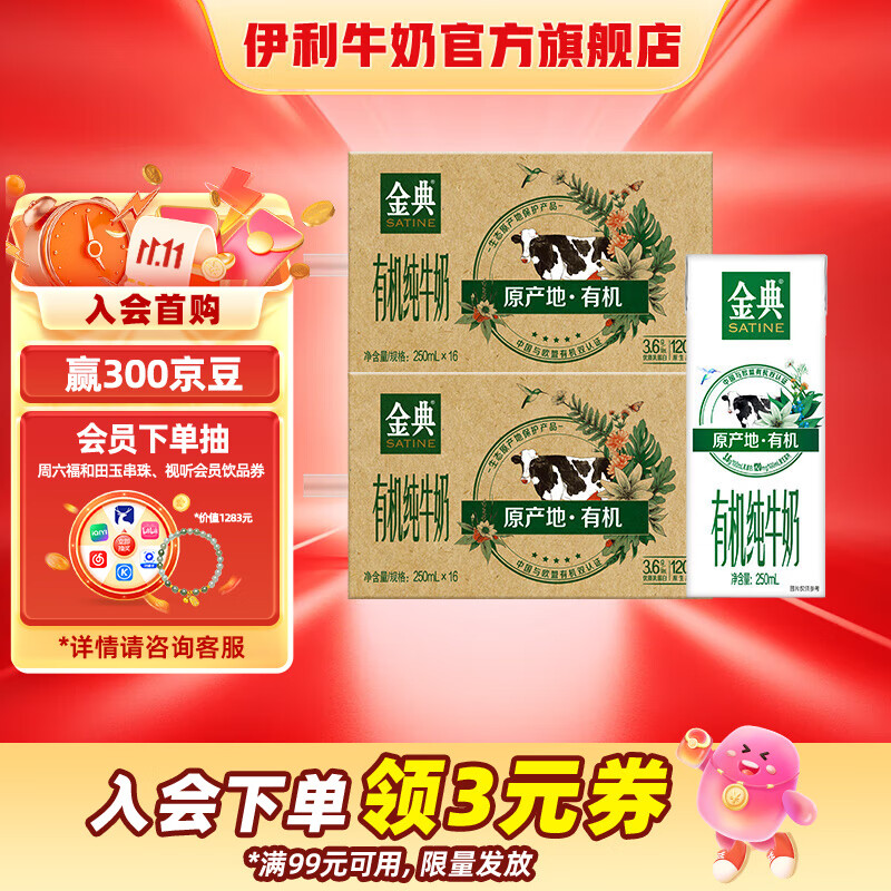 金典有机纯牛奶250ml*16盒*2箱 甄选牧场 礼盒装 7月产