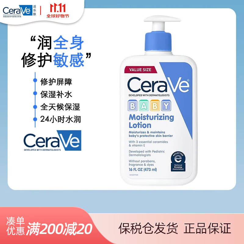 适乐肤(CeraVe)婴儿润肤乳473ml 宝宝保湿霜 儿童身体乳液 温和滋润