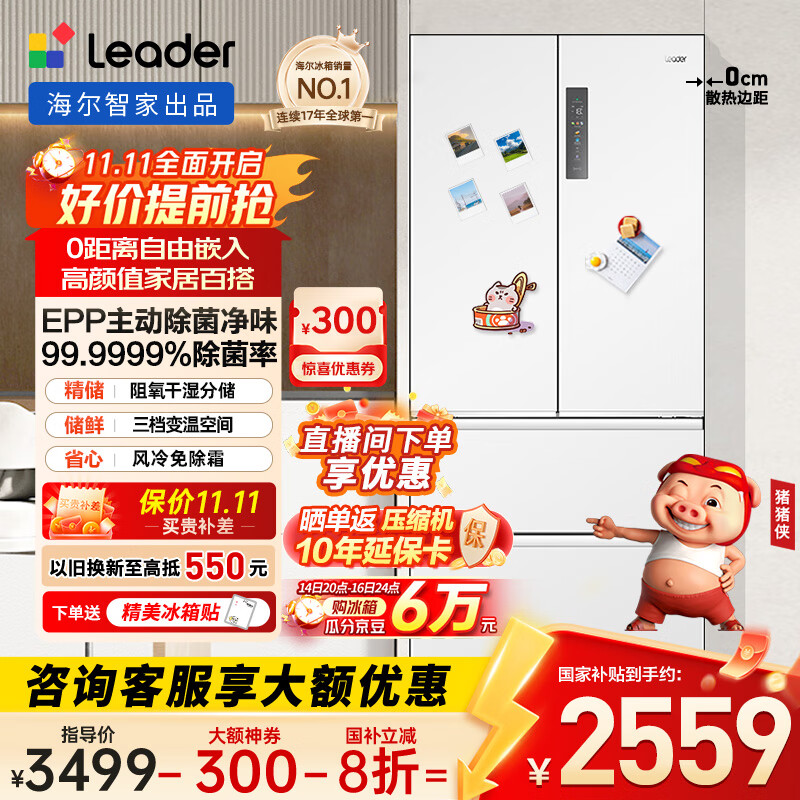 统帅(Leader)海尔出品国家补贴20%501升白色法式多门家用超薄零嵌入式电冰箱一级能效BCD-501WGLFD4DW9U1
