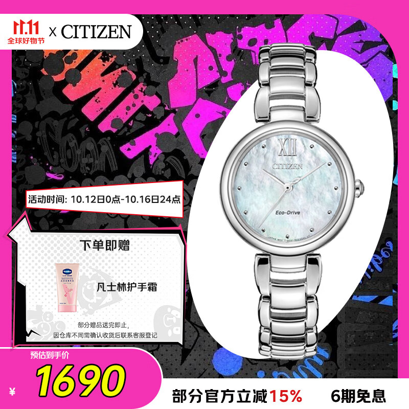 西铁城(CITIZEN)手表女日韩表L系列光动能贝母盘钢带时尚送礼物女友EM0530-81D