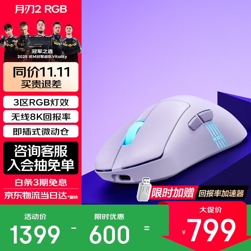 ROG月刃2RGB 三模无线游戏鼠标 AP42K传感器 支持无线8K回报率 42000DPI 65g轻量化 月耀白
