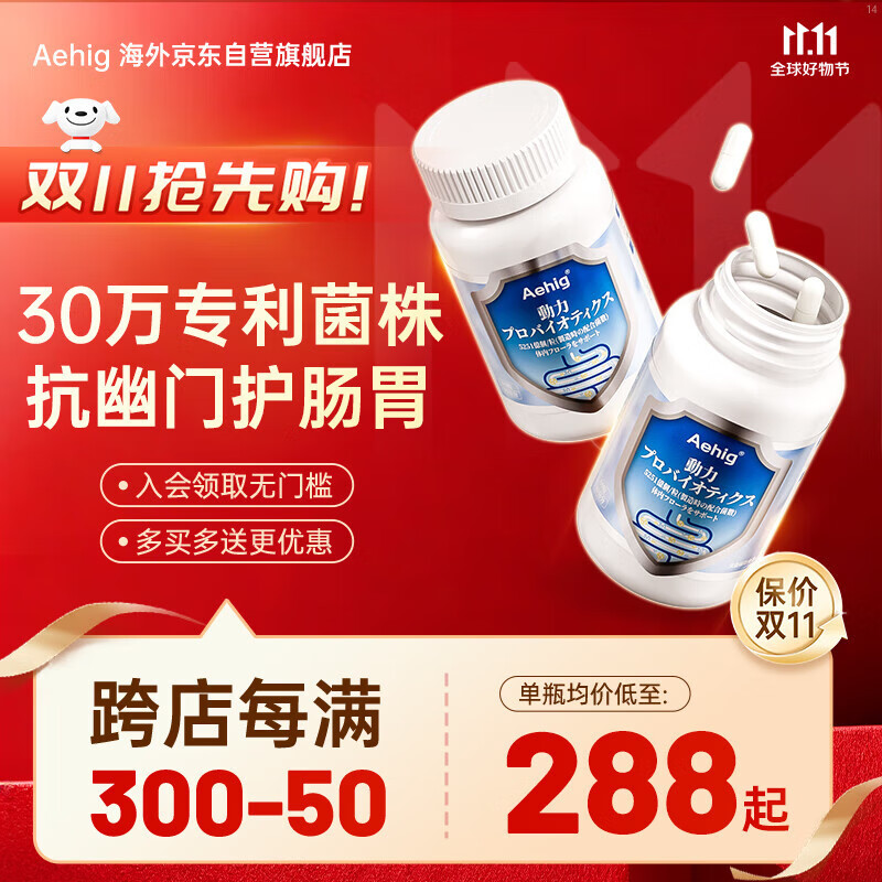 Aehig日本进口专利抗幽门螺旋杆菌益生菌调理肠胃成人儿童通用60粒/瓶