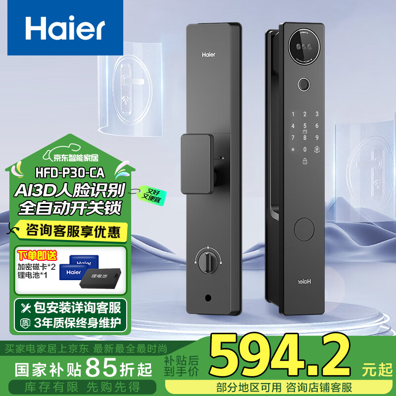 海尔(Haier)智能门锁智能锁指纹锁密码锁入户门电子锁家用防盗门锁 P30【人脸识别款】