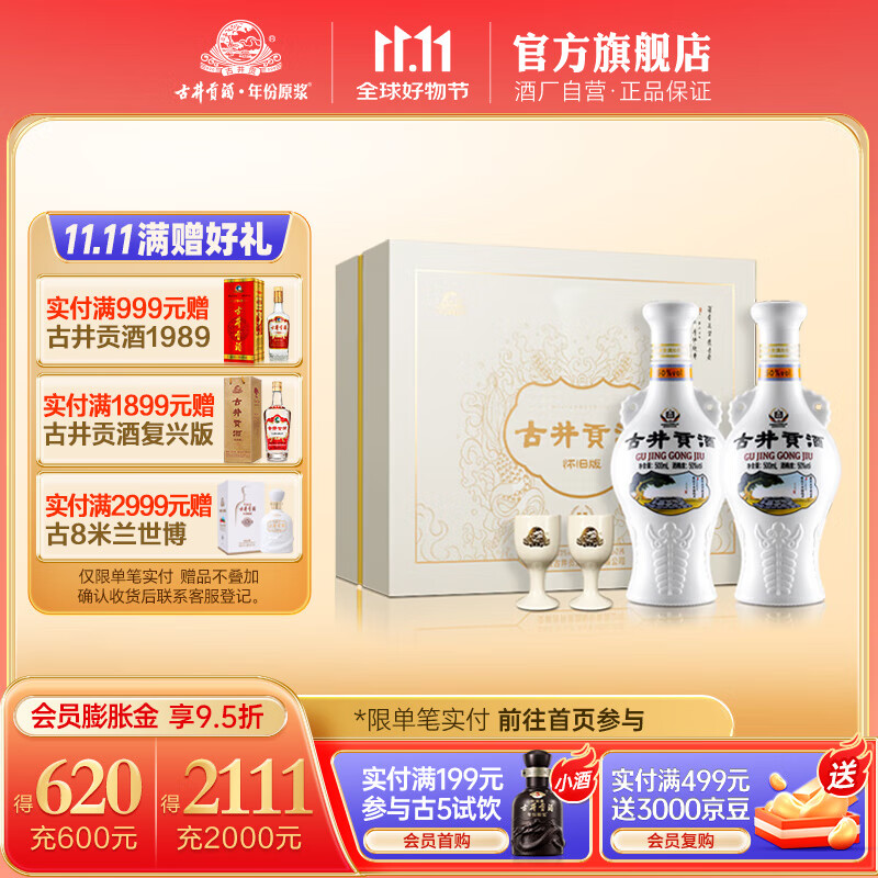 古井贡酒 怀旧版礼盒装 浓香型白酒 精选送礼 50度 500mL 2瓶