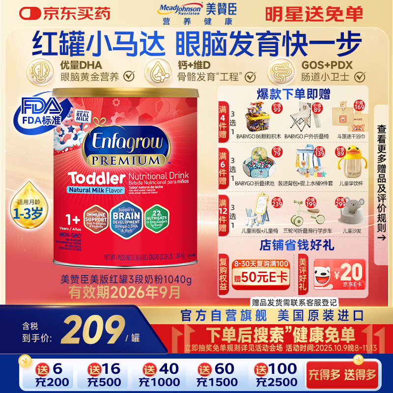 美赞臣美版3段红罐小马达Enfagrow婴幼儿配方奶粉三段1-3岁1040g