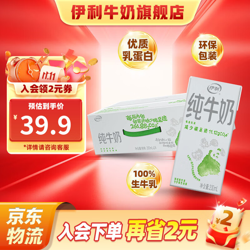 伊利纯牛奶24盒 牛奶整箱纯牛奶环保装早餐伴侣 200ml*24盒/箱