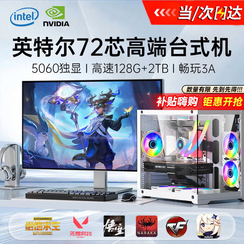 技械骑士台式机电脑128G内存酷睿i9升24核电脑主机4060独显电竞主机吃鸡办公组装补贴家用游戏水冷电脑整机 主机+27英寸【高刷显示器+键鼠套装】 套四:i9级48核芯8G独显/64G/1T畅玩3A