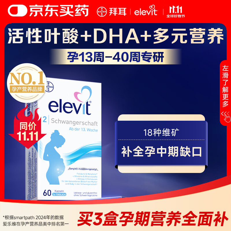 爱乐维活性叶酸【2段】孕期复合活性叶酸60片德国版孕妇备孕女士含DHA