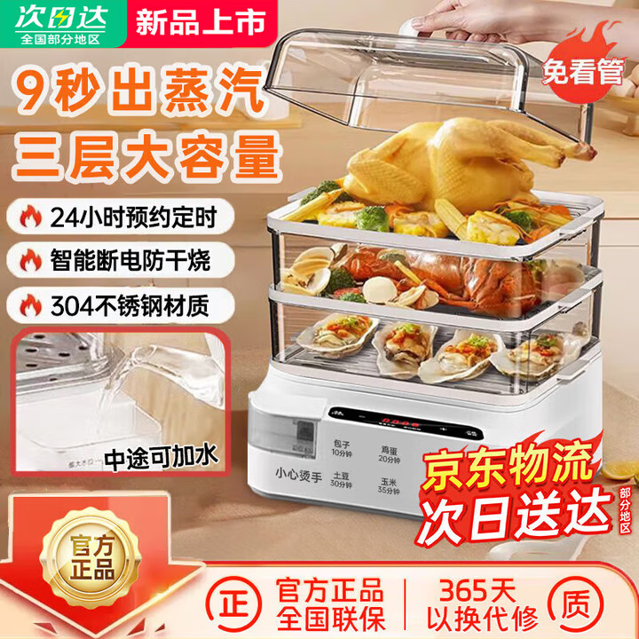 SUBOAER苏泊电蒸锅家用60L大容量全自动【2025新款】三层不锈钢多功能24H智能定时炖蒸煮一体防干烧保护 42L高配不锈钢款【三层大容量】