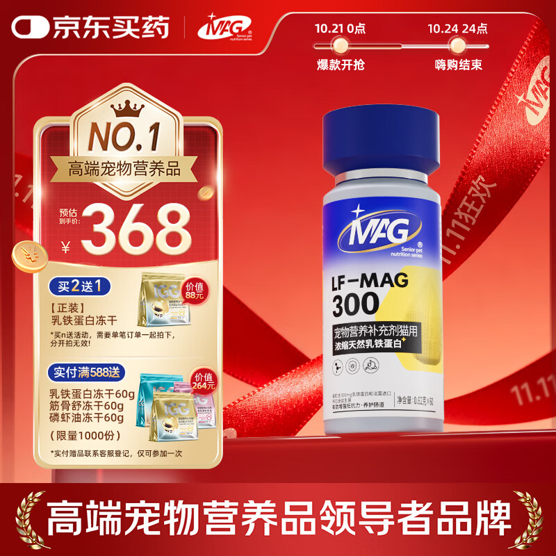 MAG猫咪0乳糖乳铁蛋白首创者 猫用猫鼻支提升免疫力少生病 60粒/瓶