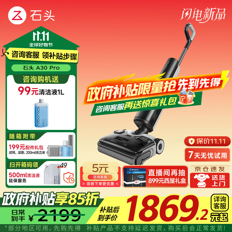 石头(roborock)A30 Pro Steam 洗地机 国家补贴 智能吸拖洗一体机 家用扫地无线电动拖把手持超薄180°平躺 0缠毛 A30Pro(全向助力)