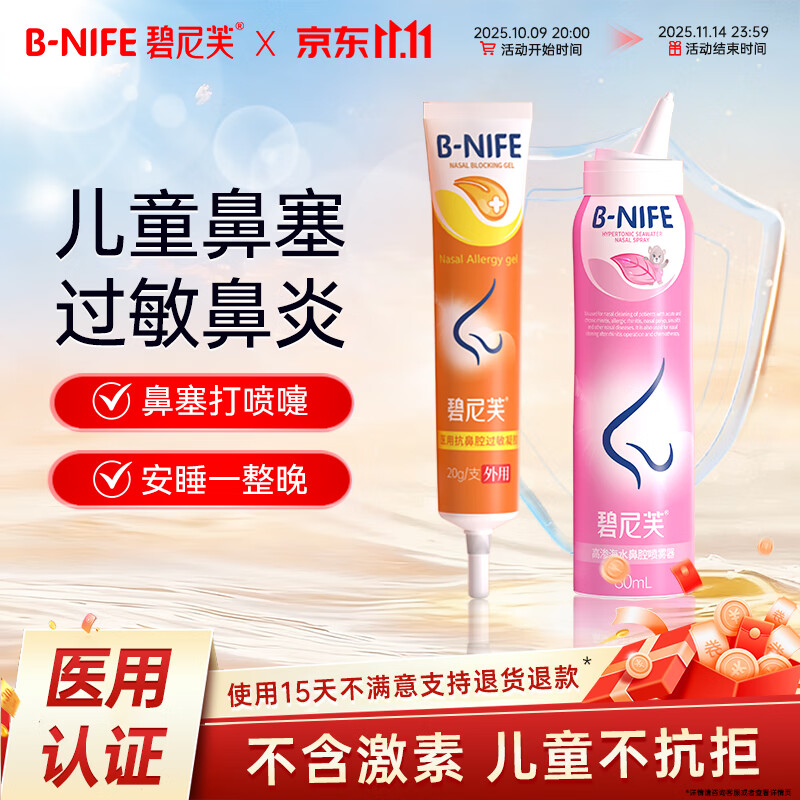 碧尼芙儿童过敏性鼻炎鼻塞鼻子不通气打喷嚏流涕鼻痒过敏鼻塞套餐